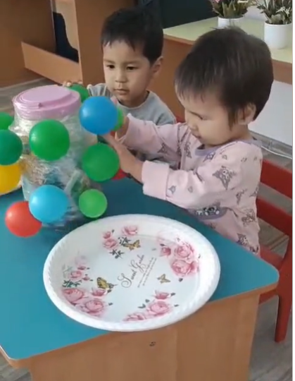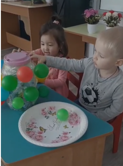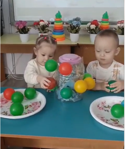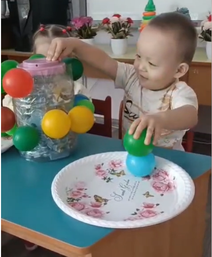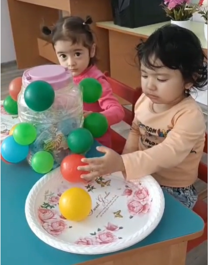 Цель занятия:Развивать мелкую моторику рук через перекладывание и захват шариков.
