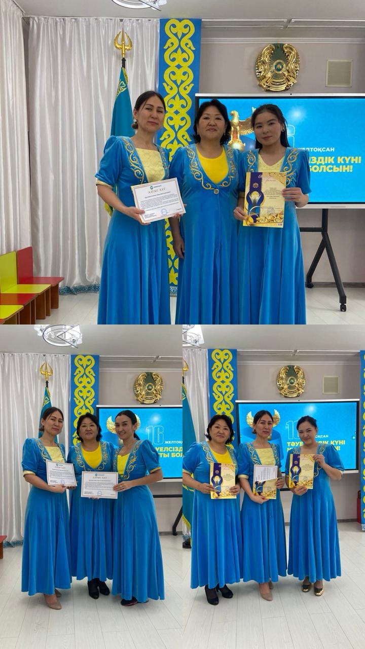 Қазақстан Республикасының Тәуелсіздік күні мерекесіне орай балабақшамыздың ұжымына алғыс хаттар табысталды.
