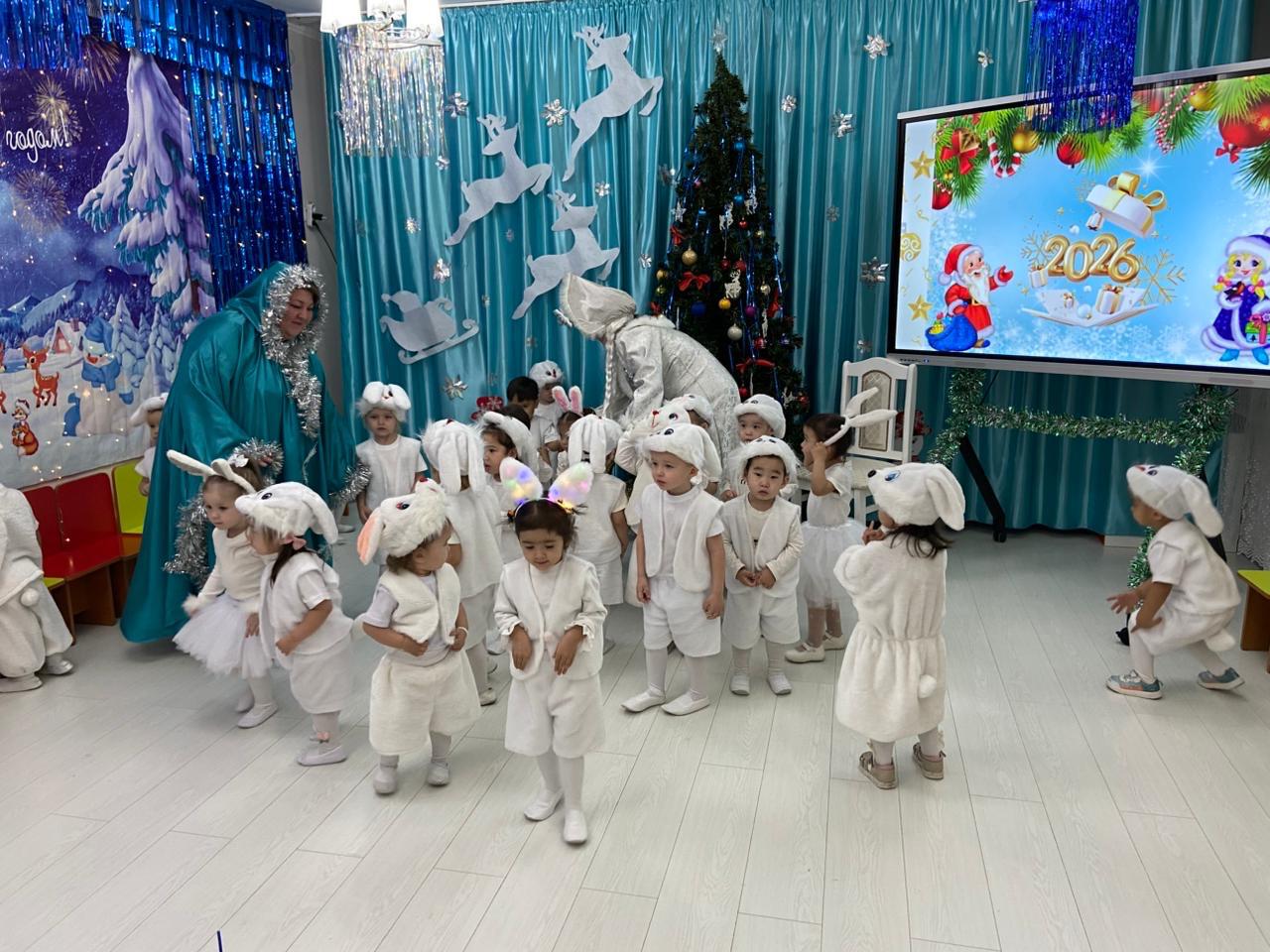 23 желтоқсан 2025 0 1 2 3 4 5 Новогодний утренник в младшей группе “Гүлдер” Тема:«Путешествие в новогоднюю сказку»Цель:Создание радостной, праздничной атмосферы у детей младшей группы через участие в новогоднем утреннике; развитие эмоциональной отзывчивости, интереса к празднику, умения радоваться, играть и общаться со сверстниками.