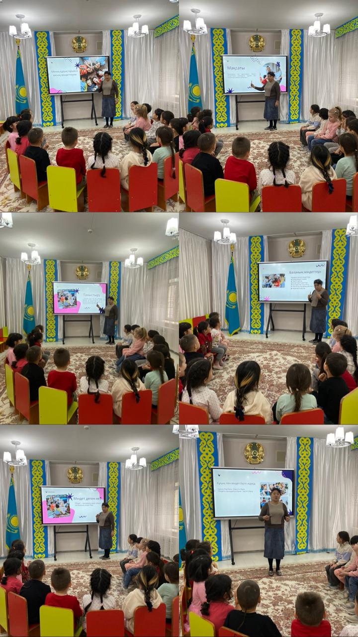 14 қаңтар 2026 0 1 2 3 4 5 Менің құқықтарым – менің міндеттерім Мақсаты: Балаларды өз құқықтарын білуге, міндеттерін орындауға, құрмет пен жауапкершілікке тәрбиелеу.Мектепалды "Балапан" тобы.