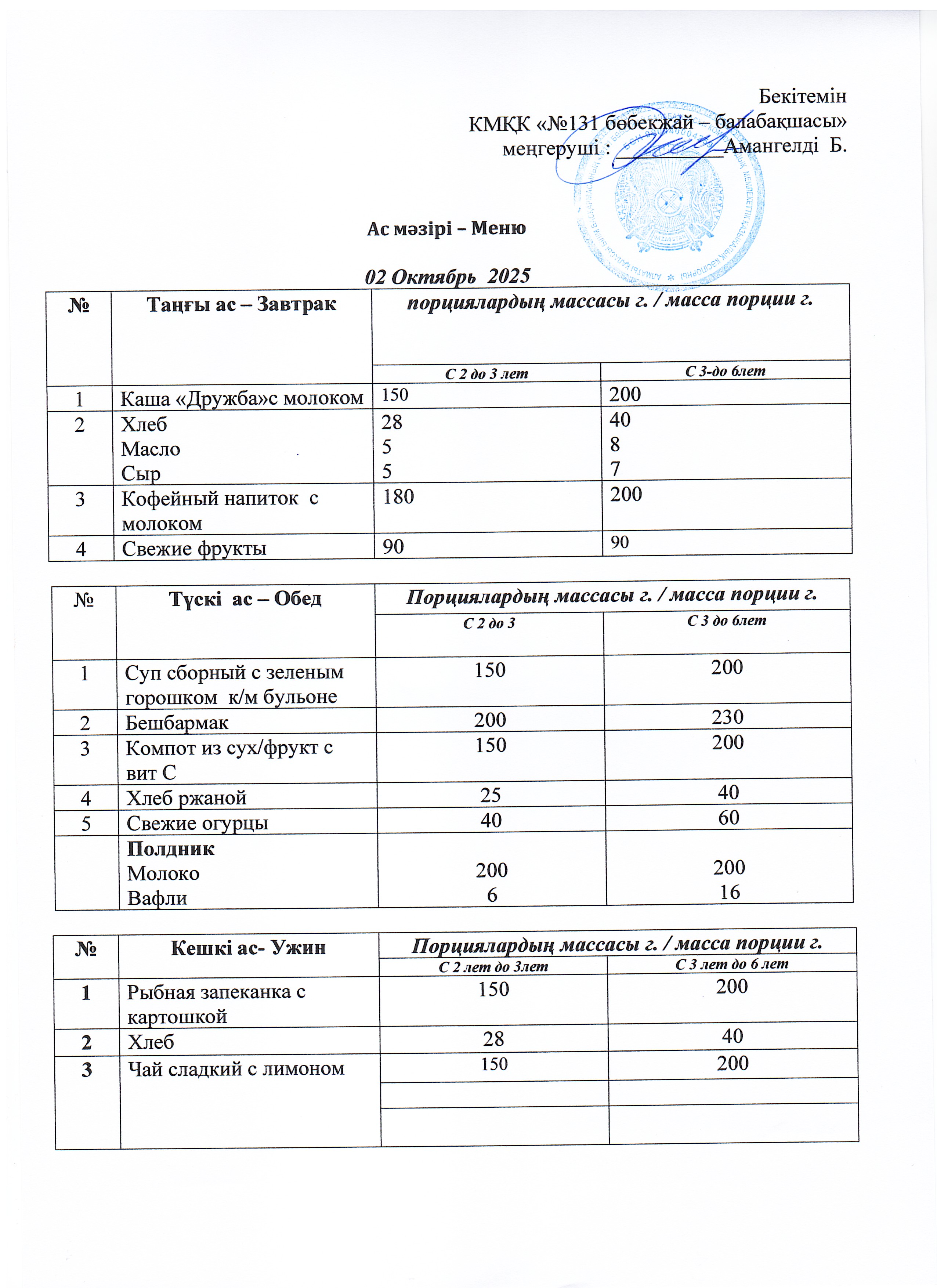 Меню 02 Октябрь 2025 г » КГКП "Ясли сад №131"