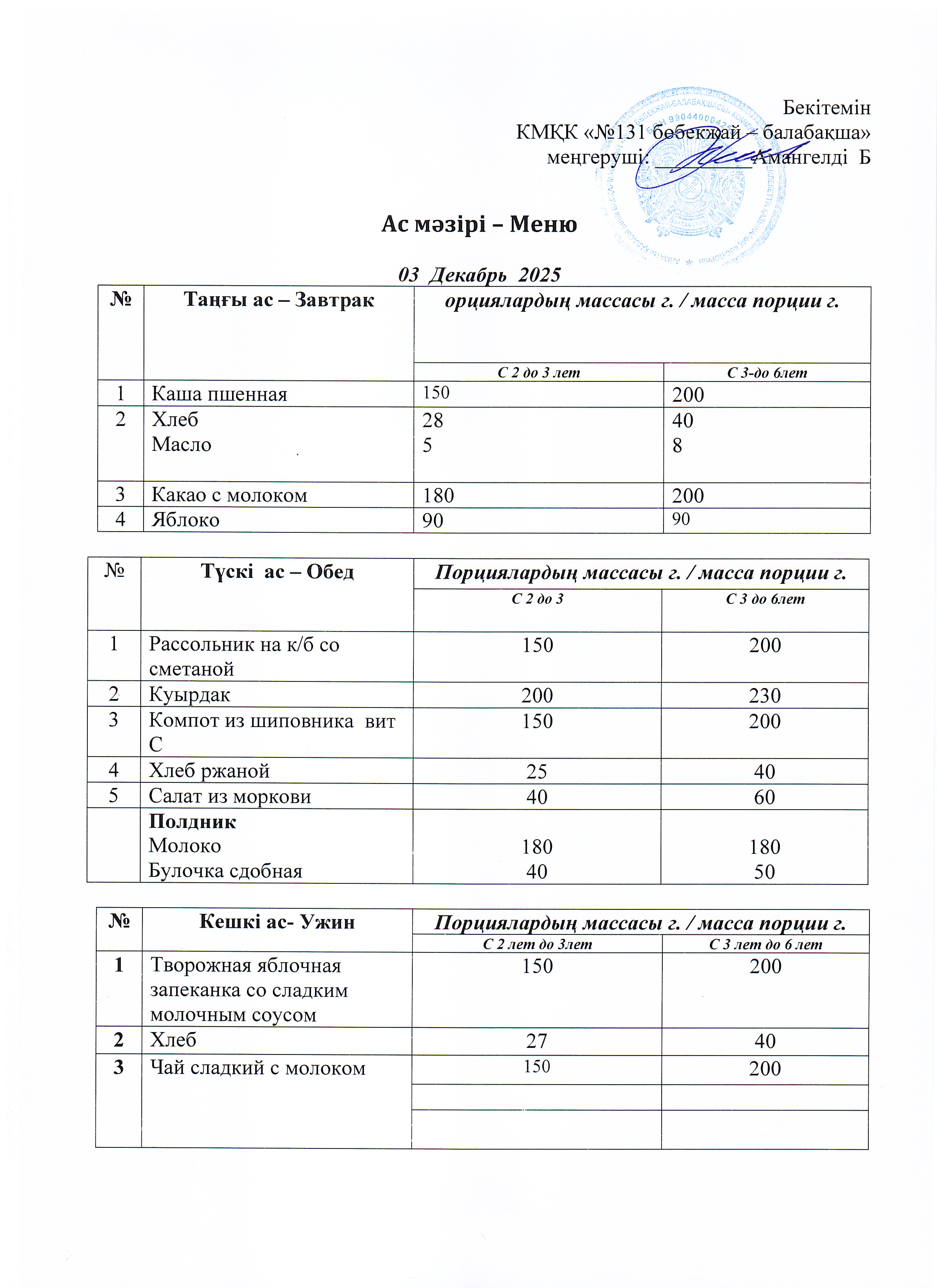 Меню 03 Декабрь 2025 г » КГКП "Ясли сад №131"
